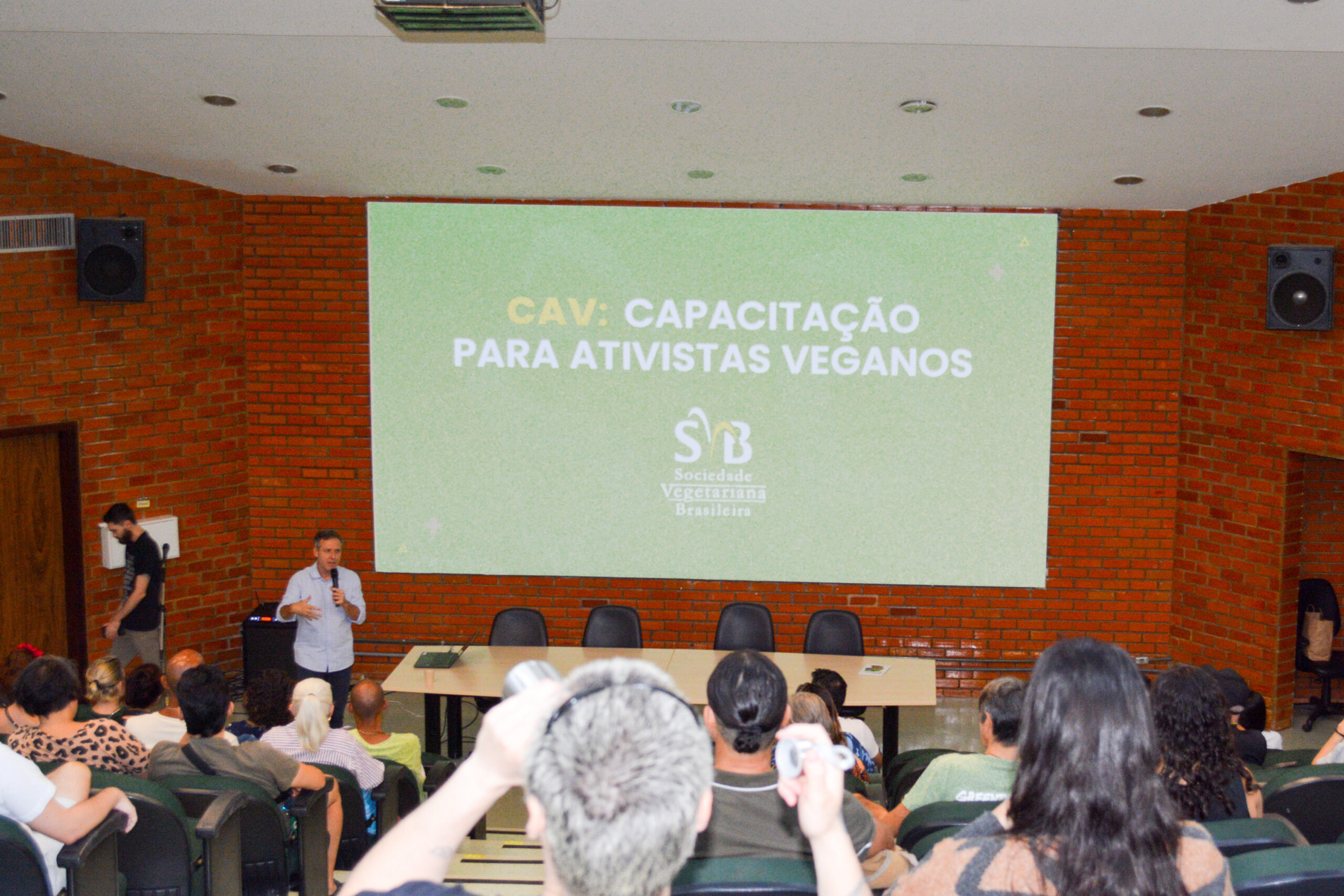 A Sociedade Vegetariana Brasileira (SVB), por meio do grupo SVB Brasília, promoveu mais uma edição da Capacitação para Ativistas Veganos (CAV), pela primeira vez em Brasília, no dia 26 de abril. Conduzida pelo vice-presidente da SVB, Ricardo Laurino, a formação contou com a participação de mais de 100 cursistas e ocorreu na Universidade de Brasília (UnB). A ação compõe o conjunto de atividades do Abril Vegano, mês de promoção e conscientização a respeito do veganismo.